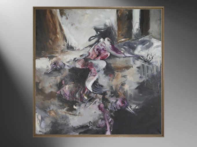 Nicolas Cluzel very well knows that the subjects in painting are limited and that this last one's object is to register in his time by means of these subjects. The renewal of meaning that he proposes in his works thus far outweighs what might be summarily perceived as an art of quotations. In the very formatted frame of a duplication, he brings together the bodies and objects of origin with others much more contemporary or unexpected. The world of food overconsumption interpenetrates with the one of waste overproduction. The death of nature is juxtaposed with that of objects. In fact, the series "Nature morte" tells us about the death by consumerist suicide of a type of society.