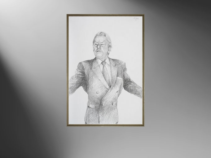 related to the work :from time to time Gibergues comes out of his anonymity of characters to describe celebrities, applying to them the same treatment. Discovering in the press an Alain Delon's photo Galerie Anna-Tschopp asked Gibergues his own interpretation of it. The ask was for an oil on canvas but the artist preferred to integrate it in his series of drawings titled "Les ambitieux", in the company of Emmanuel Macron, Vladimir Putin, Donald Trump and some others.