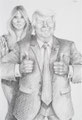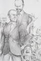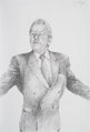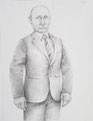 If Gibergues' work is very influenced by the movies, if his characters owe a lot to Frederico Fellini and to the disproportionate creatures who embody the director's fantasies, the fact remains that the artist, through this filmography, essentialy takes a look at his contemporaries. But what is more contempary than oneself or one's relatives, even if these lasts are that way only through medias ? In his portraits and self-portraits Goberges poses the problem of representativeness. Should one respect the photographic reality or transgress it to try to reach a psychological depth, a personality? Deliberately he chooses to overdo the line and emphasize some defects or disgracious shapes knowing that from these emerge empathy or rejection.