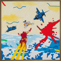 à propos de la série : la série « splash » se caractérise par des « éclaboussures » en métal ou bien dessinées. Les coordonnées géographiques du lieu où se décrit l'action sont aussi souvent indiquées sur la toile.