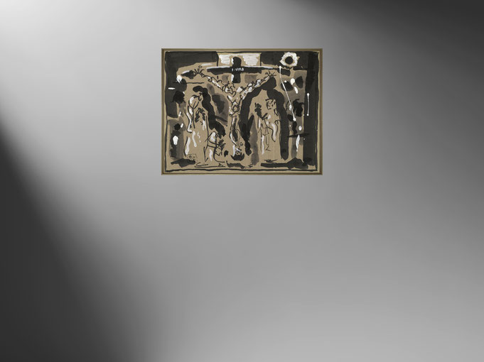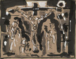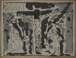 related to the series : Every morning from October 1992 to April 1993 Bernard Morteyrol disciplined himself to make an Indian ink drawing on the theme of the crucifixion. The series presented here is the totality of those directly inspired by the Isenheim altarpiece.