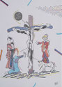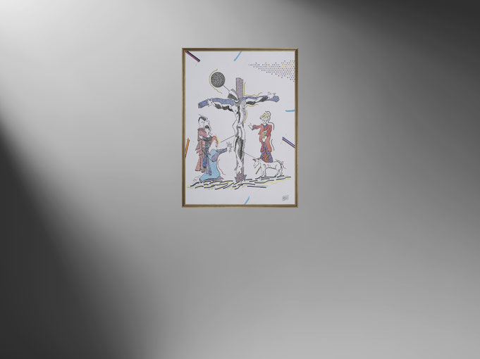 Bernard Morteyrol works on image. An image that he recomposes by use of others coming from classical painting, comics or news. Sometimes even, he uses his virtuosity of mimicry to transcribe the work of a master « in the manner of » another. What he paints is most usually critical of current society and its values ; values he frequently confronts to those of the past by juxtaposing his work with the very most famous artworks of this same past. Out of this eminently political context it also happens to him to bring together two times for the sole purpose of bringing out the funniness of a situation, to show that the reality of today often destroys the dreams or the imaginary of yesterday.