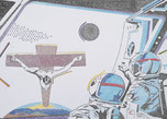 Bernard Morteyrol travaille sur l’image. Une image qu’il recompose à partir d’autres issues de la peinture classique, de la bande dessinée ou de l’actualité. Quelquefois même il utilise sa virtuosité de mimétisme pour transcrire l’œuvre d’un Maître « à la manière d’ »un autre. Son propos est le plus habituellement critique vis à vis de la société actuelle et de ses valeurs ; valeurs qu’il confronte fréquemment à celles du passé par juxtaposition de son travail avec de célébrissimes œuvres de ce même passé. Hors de ce contexte éminemment politique il lui arrive aussi de rapprocher deux époques dans le seul but de faire ressortir le cocasse d’une situation, de montrer que la réalité d’aujourd’hui détruit souvent le rêve ou l’imaginaire d’hier.
