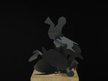Artwork that constitutes a kind of tour de force since it is conceived from, and only with, 2 sheets of metal cut, folded and joined together by two welding points. It constitutes a perfect counterpart in volume of the motifs expressed in flat forms in the paintings and drawings of the "Ile au Jazz" series.